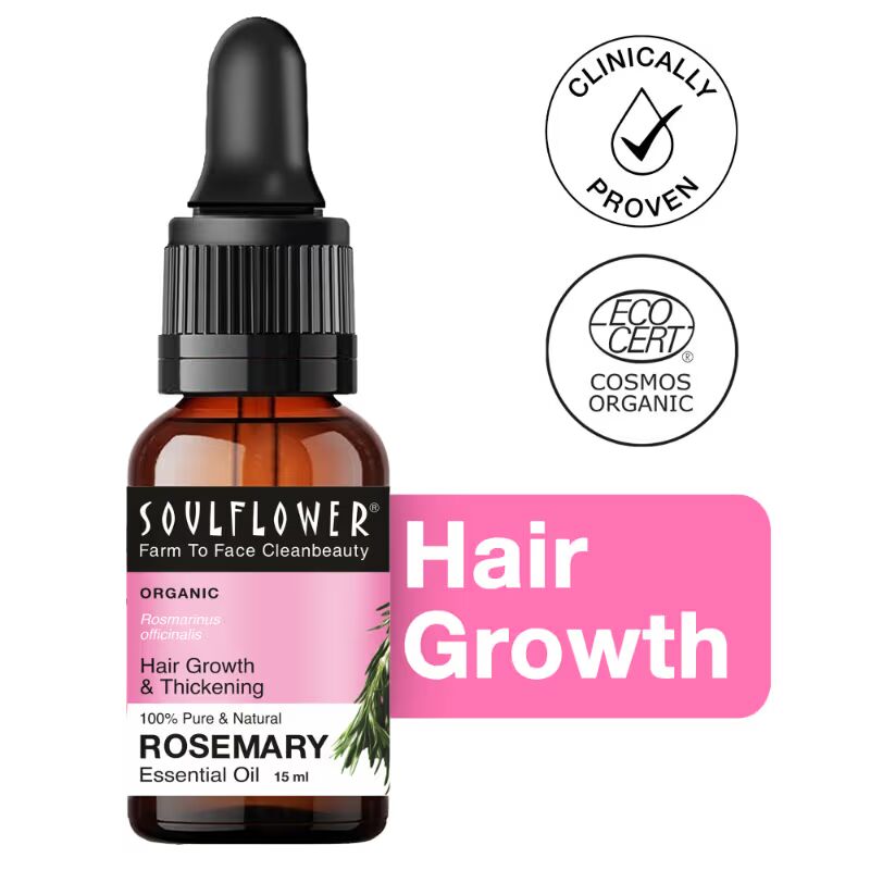 Soulflower Organic Rosemary Hair Growth Thickening Essential Oil, Hair Serum For Hair Fall Control, Scalp Care